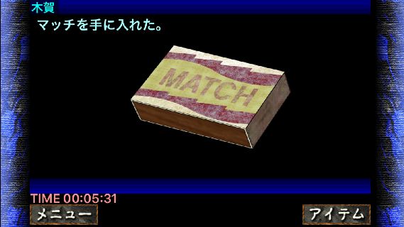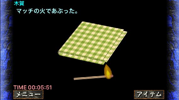 AKAME 絶望からの脱出 無料 4.7 評価する 送信する Garusoft Development Inc. 攻略その5 救急箱の左隅から「マッチ」を入手。 左の壁から「カーテン」を入手。 「カーテン」を「はさみ」で切って、仲間から「ハンカチ」を入手。 「ハンカチ」を「マッチ」で炙って、扉の前へ。 扉を開けて、イベント後に「客室『ほ』のカギ」を入手。 前編:Chapter 2 探索 攻略その1 攻略その2 攻略その3 攻略その4 前編:Chapter 3 衝撃 攻略その1 攻略その2 攻略その3 攻略その4 前編:Chapter 4 武器を集めろ 攻略その1 攻略その2 攻略その3 前編:Chapter 5 地下からの脱出 攻略その1 攻略その2 攻略その3 攻略その4 攻略その5 前編:Chapter 6 救出 攻略その1 攻略その2 攻略その3 攻略その4 攻略その5 前編:Chapter 7 混乱 攻略その1 攻略その2 攻略その3 攻略その4 前編:Chapter 8 疑惑 攻略その1 攻略その2 前編:Chapter 9 犯人登場…? 攻略その1 攻略その2 攻略その3 攻略その4 攻略その5 前編:Chapter 10 間違い 攻略その1 攻略その2 攻略その3 攻略その4 攻略その5 後編:Chapter 11 崩壊 攻略その1 攻略その2 攻略その3 攻略その4 攻略その5 攻略その6 後編:Chapter 12 正体 攻略その1 攻略その2 攻略その3 攻略その4 攻略その5 後編:Chapter 13 誘導 攻略その1 攻略その2 攻略その3 攻略その4 後編:Chapter 14 秘密 攻略その1 攻略その2 攻略その3 攻略その4 攻略その5 攻略その6 攻略その7 後編:Chapter 15 葬られた過去 攻略その1 攻略その2 攻略その3 攻略その4 後編:Chapter 16 謎の装置 攻略その1 攻略その2 攻略その3 攻略その4 攻略その5 後編:Chapter 17 反撃 攻略その1 攻略その2 攻略その3 攻略その4 攻略その5 後編:Chapter 18 悪夢の終わり 攻略その1 攻略その2 攻略その3 攻略その4