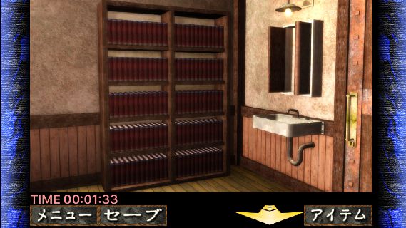 本棚を棚の中のヒントを元に、『右4段目を2回、左2段目を1回、右3段目を3回』タップする。