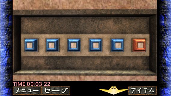 右の青い線の絵を見て、最初に『左から2番目を2回、左から4番目を1回、左から5番目を1回、オレンジのボタン』の順で押す。