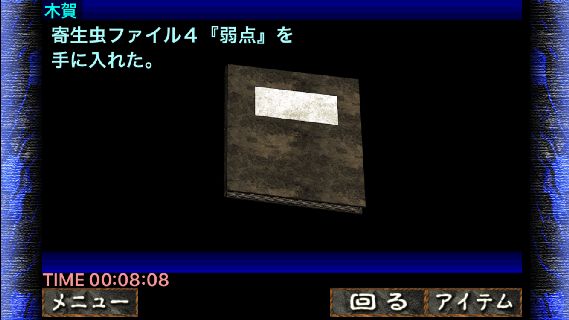 金庫を開けて、「寄生虫ファイル4『弱点』」を入手。