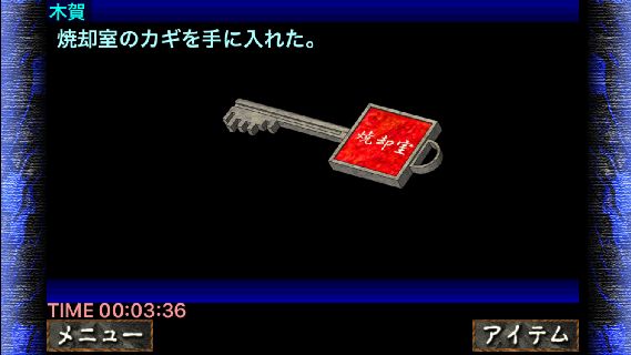 死体の手元から「焼却室のカギ」を入手。