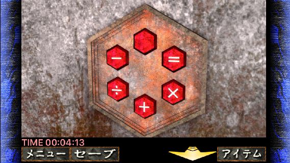 文字は『プラス、マイナス、かける、わる、イコール』の頭文字になっているので、左のボタンを『+、+、-、-、×、÷、=、=、上』の順で押す。