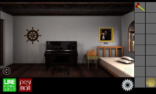 『piano、ベッド、舵、樽、絵、植木』の順番を確認。