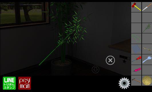 植木を拡大して、「ノコギリ」を使って「竹」を入手。