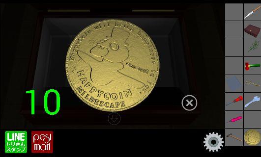 カバの置き物の口に10枚の「コイン」を入れていく。
