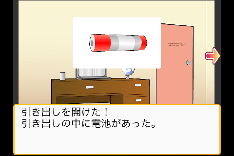 机の右側面にある植木の後ろから「バッテリー」を入手。