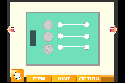 『コイン』を上から順に『月→星→太陽』の順ではめて、『出会い→別れ→出会い』になるようにボタンを動かす。