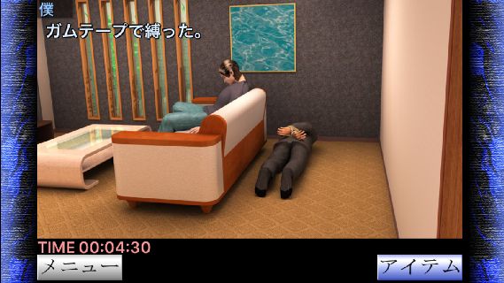 右奥に倒れている犯人を拡大して、「ガムテープ」で拘束する。