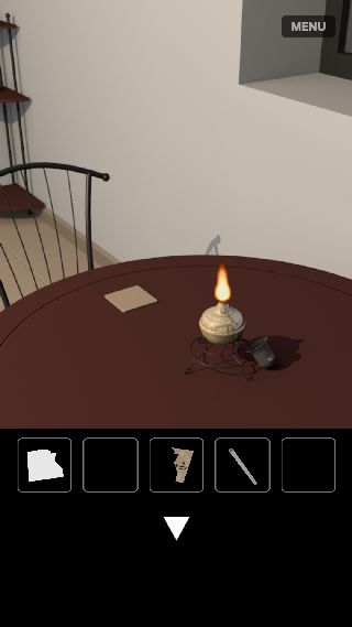 「マッチ」で火をつけて、「白い紙」を炙る。