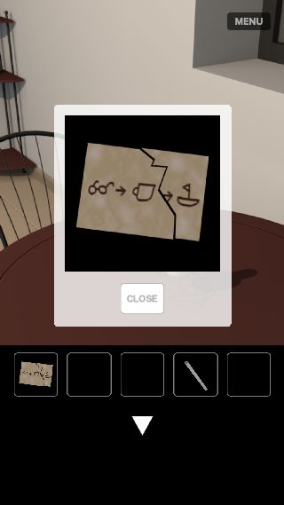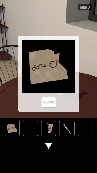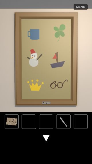 「紙の切れ端」と組み合わせて、『メガネ→カップ→船』を確認。