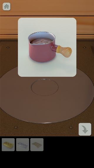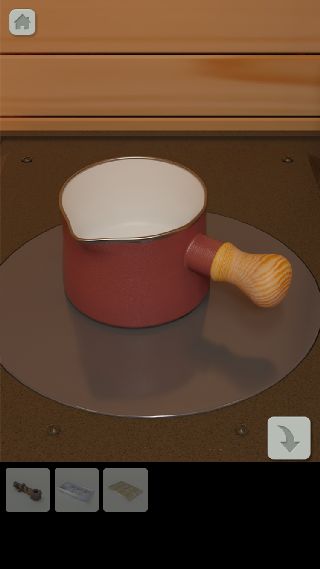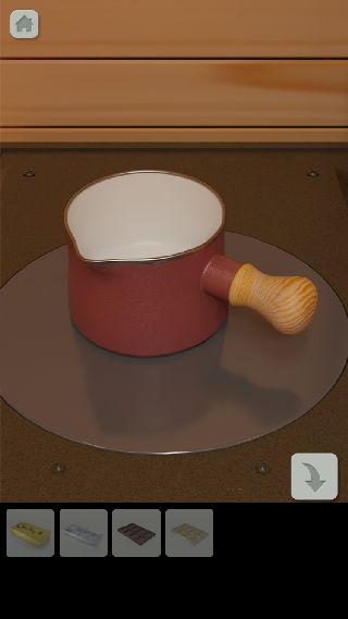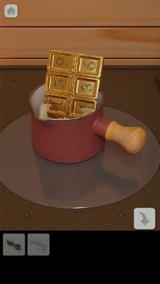 「鍋」のチョコを流し込んで、「カギ」を入手。