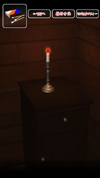 棚の上を拡大して、「マッチ」でロウソクに火をつける。