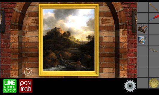 右の絵を拡大して、額の4隅を『左下、左上、右上、左上、右下、右上』の順で動かす。