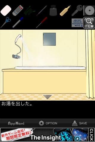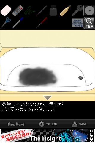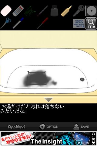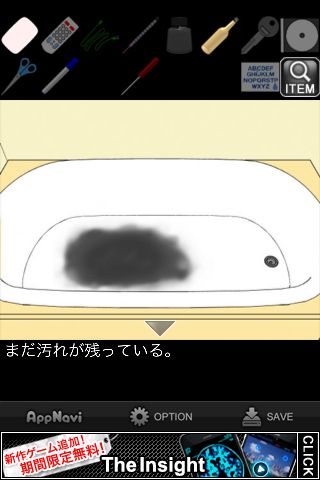 『まだ汚れが残っている』のメッセージを確認して、バスルームから出てまた戻ると『お湯だけだと汚れは落ちない』に変化する。