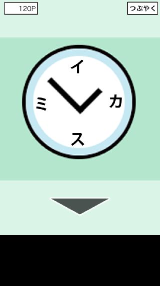 左上の時計は、長針と短針が90°なので3時を表している。『カ』を確認。