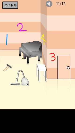 『ピアノの2文字目』、『トンカチの3文字目』、『机の1文字目』、『掃除機の4文字目』を抜き出す。