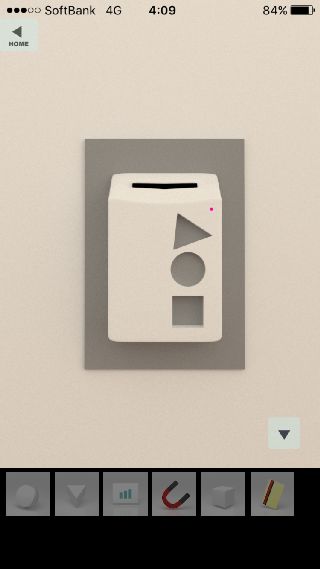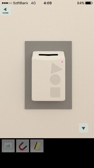 壁の装置に「三角のブロック」、「丸いブロック」、「四角いブロック」をはめる。
