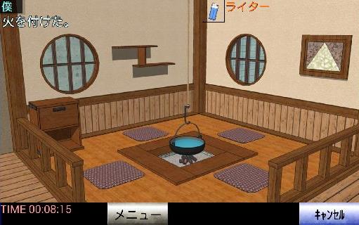 囲炉裏に「炭」を置いて、「ライター」で火をつける。