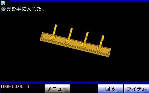 左のソファーの右端のクッションを持ち上げて、「金具」を入手。