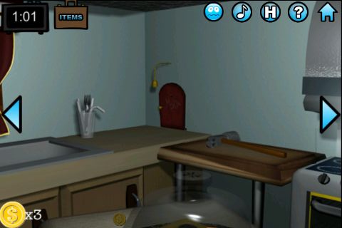 Escape 3D: The Kitchen 無料 0 評価する 送信する 攻略その1 キッチンの中央からスタート。 右に移動。 左から2番目の扉を開けて、「泡立て器」を入手。 右に移動。 冷蔵庫を開けて「卵」を入手。 右に移動。中央下から「コイン」を入手。 冷蔵庫の下から「メモ」と「コイン」を入手。 右に移動。右下から「コイン」を入手。 シンクの下の扉の中から「ボウル」を入手。 右に移動。中央下から「コイン」を入手。 攻略その1 攻略その2 攻略その3
