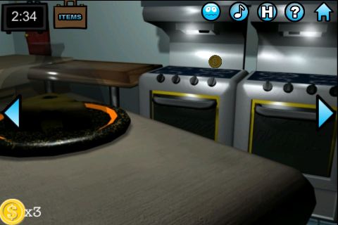 Escape 3D: The Kitchen 無料 0 評価する 送信する 攻略その3 右に2回移動。中央から「コイン」を入手。 オーブンに「ボウル」を入れて、10秒後に「焦げたケーキ」を取り出す。 左に移動。 「焦げたケーキ」を中央の扉の前において、扉を開けるとネズミが出てくる。 「チーズ」をネズミに使って「カギ」を入手。 扉に「カギ」を使って脱出。 攻略その1 攻略その2 攻略その3