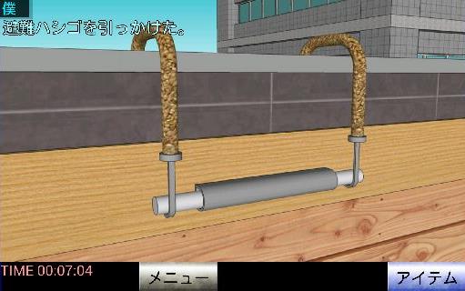 「棒」を差し込んで、「避難ハシゴ」を引っ掛ける。