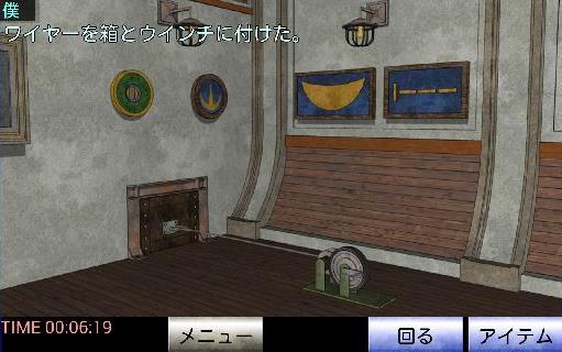 床に「ウインチ」を置いて、「ワイヤー」を取り付ける。