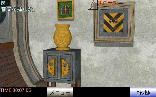 右の黄色と黒の絵の穴に「銀の音叉(おんさ)」を差し込む。