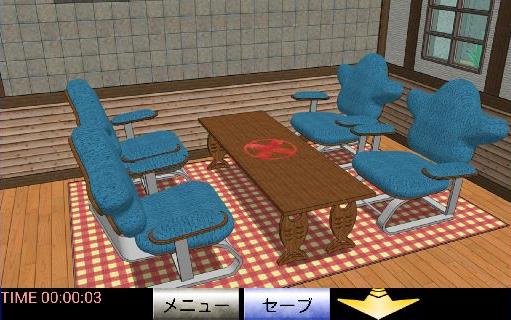 右奥の椅子の後ろから「赤い脱出バッジ」を入手。