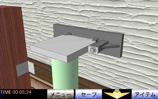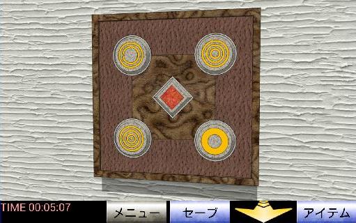 扉の画面の壁の装置を拡大して、ボタンの輪の数に合わせて『1=4回、2=3回、3=1回、4=2回』押して最後に中央のボタンを押す。