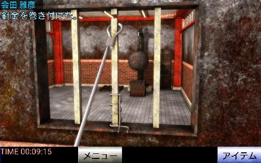 前の部屋に戻って、鉄格子に「針金」を巻きつける。