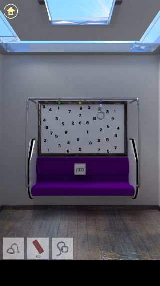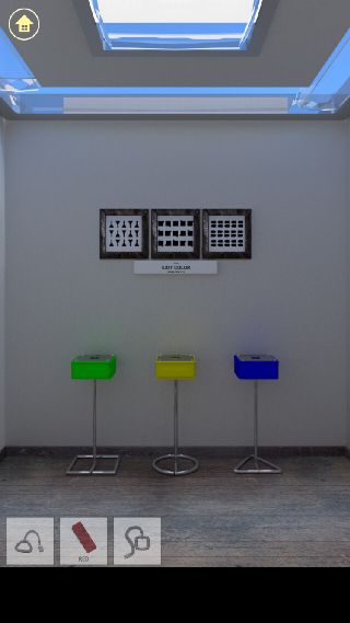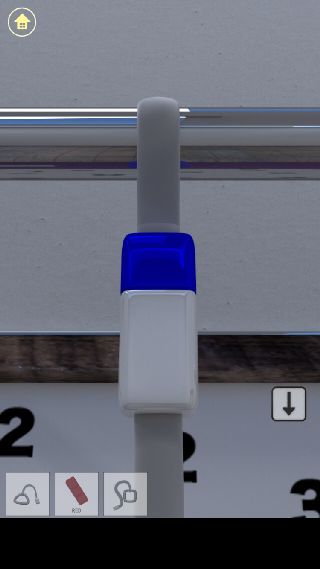 ノーマルルーム3 無料 0 評価する 送信する 攻略その1 扉を拡大。 「コの字型のブロック」を入手して、左に移動。 左の扉を拡大して開ける。 「三角形の吊り革」を入手して、中央の扉を拡大。 「コの字型のブロック」をはめて開ける。 「赤いブロック」を入手して、右の扉を拡大。 中から「四角形の吊り革」を入手。 左に移動して、3色の灰皿とパイプ脚の形を確認。 『緑=□、黄=○、青=△』 左に移動。 右上から「丸い吊り革」を入手。 先ほどの『緑=□、黄=○、青=△』をヒントに、左に「四角い吊り革」をはめる。 攻略その1 攻略その2 攻略その3 攻略その4