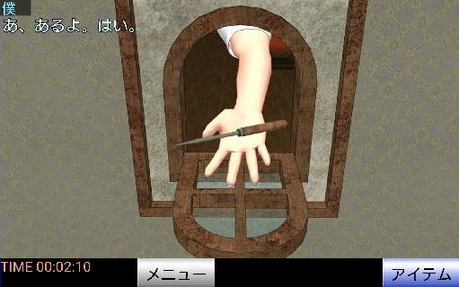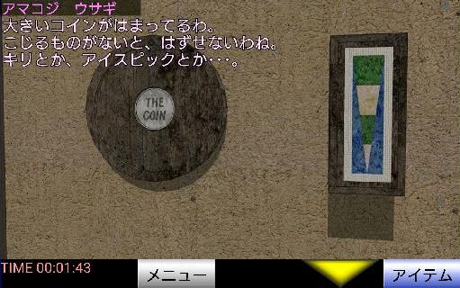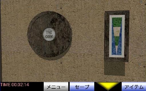 右の壁の丸い額に「アイスピック」を使って、「コイン」を入手。