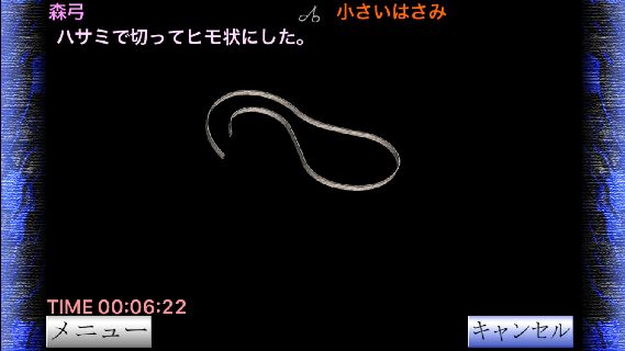 「小さいはさみ」で切ってヒモ状にして、右に移動。