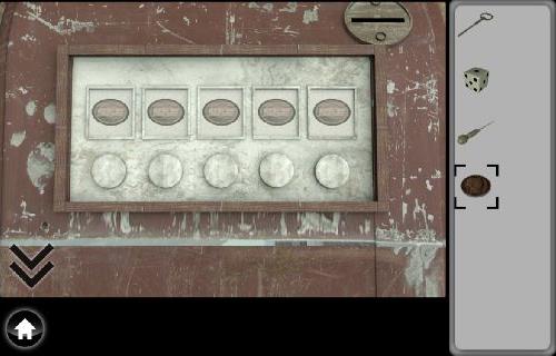 スロットマシンの正面を拡大して、右上に「コイン」を入れる。