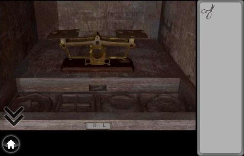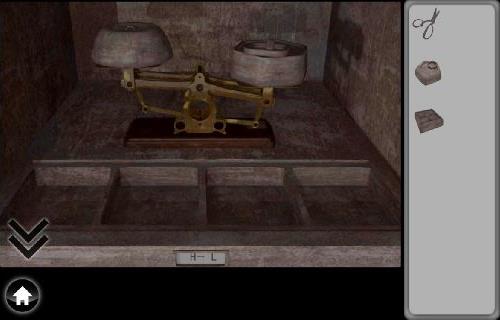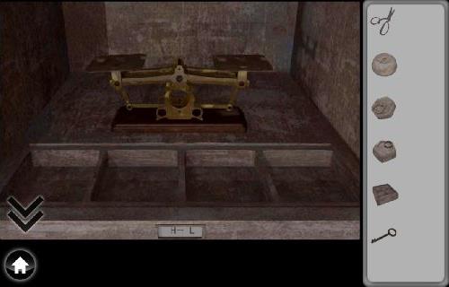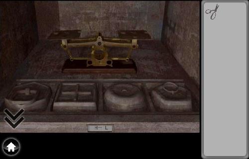 『H(Heavy)→L(Light)』の順で、左から「六角形の重り」、「四角い重り」、「丸い重り」、「五角形の重り」を置く。