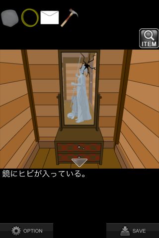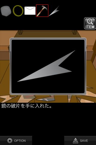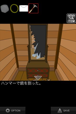 「ハンマー」で鏡を割る。