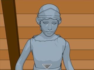 左の石像の頭部を拡大。