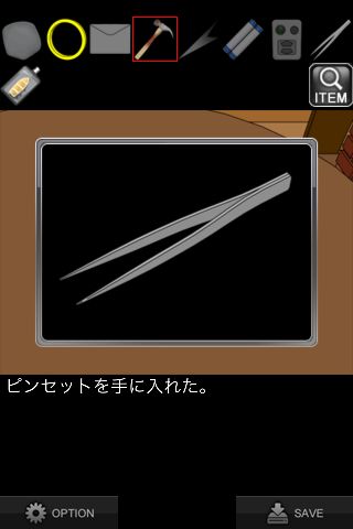 「ハンマー」で壊して「ピンセット」を入手。