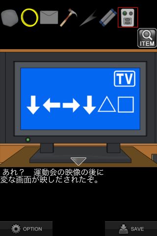 「リモコン」を使って、最後の暗号『↓←→↓△□』を確認。