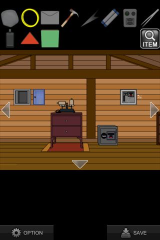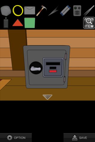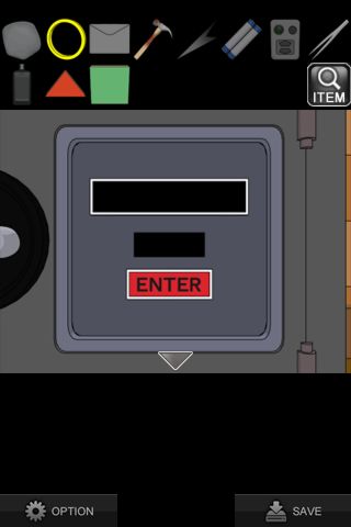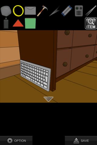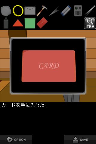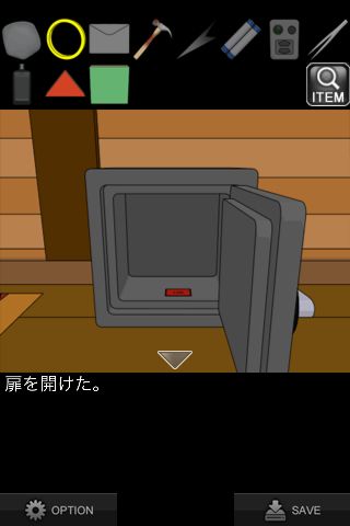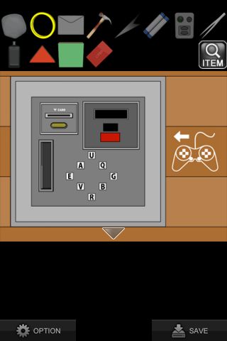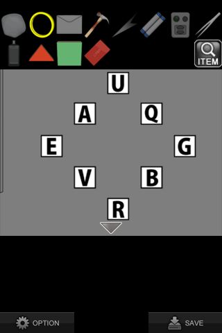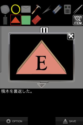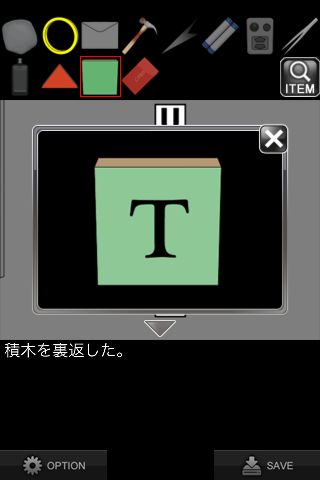 「四角形の積木」を裏返して『T』を確認。これでテレビに映っていた暗号は『REGRET』に変換される。