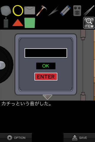 右上の装置を調べて、アルファベットを拡大。テレビに映っていた『↓←→↓△□』から『REGR△□』となる。
