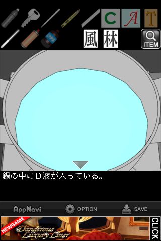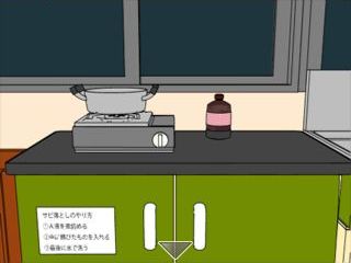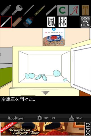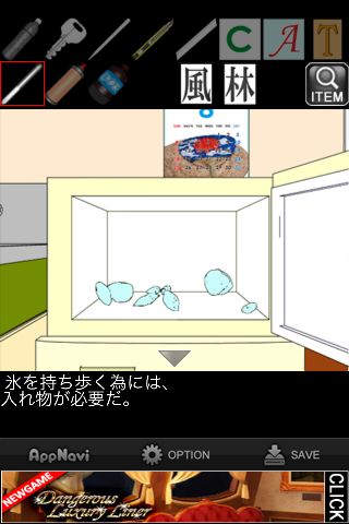 冷凍庫を開けて氷を調べ、『入れ物が必要だ』のメッセージを出す。