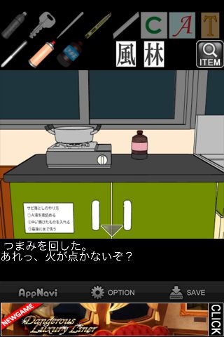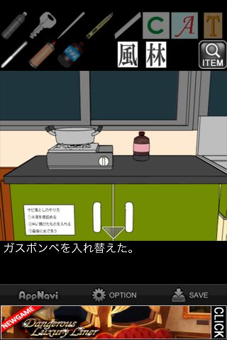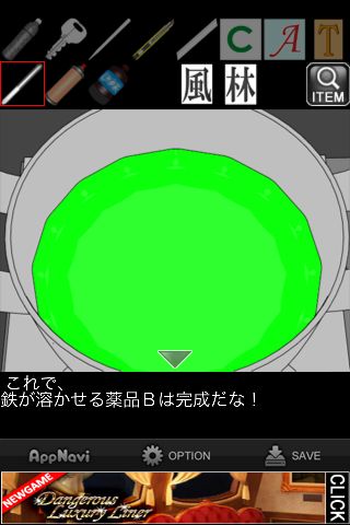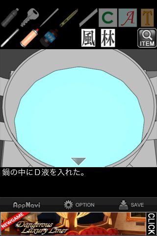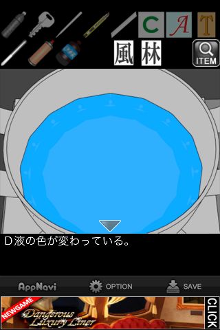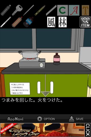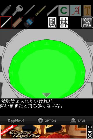再び2回手前に戻り、完成していたら「試験管」を使って『熱いままだと持ち歩けない』のメッセージを出す。