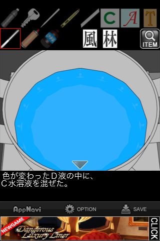 手前に2回移動して戻り、色が変わっていたら「試験管」の水溶液を入れる。