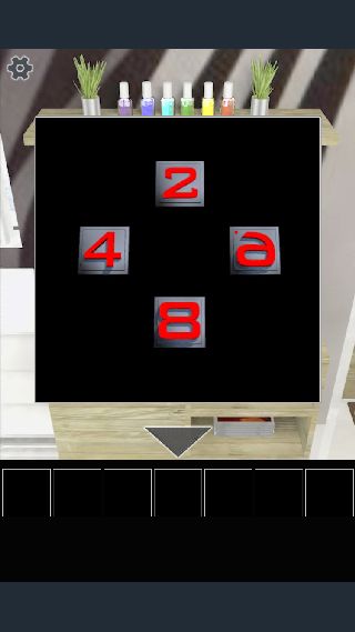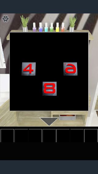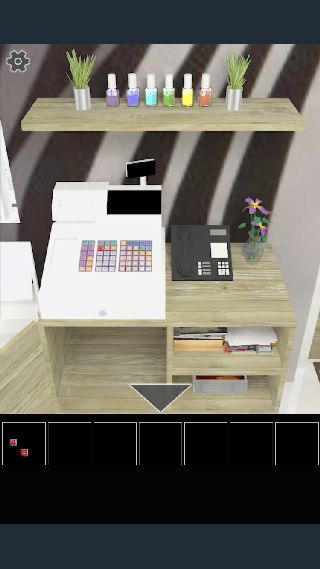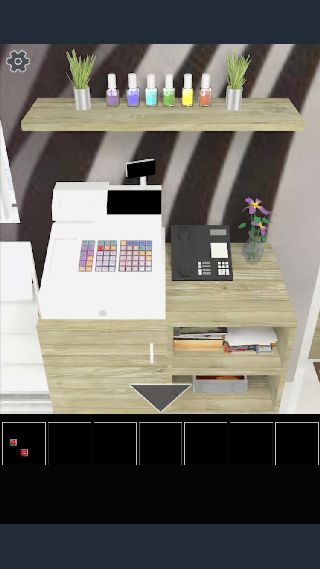 ソファーとレジの間にある箱を拡大して、マニキュアの瓶の色の並びに合わせる。