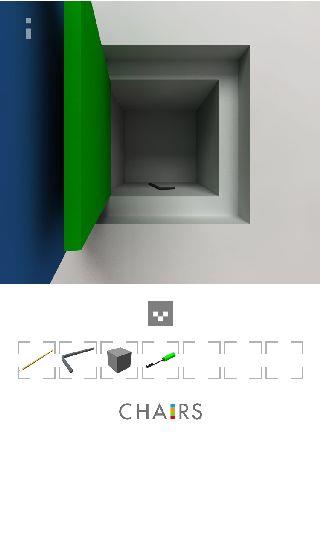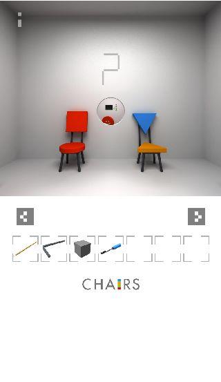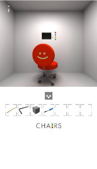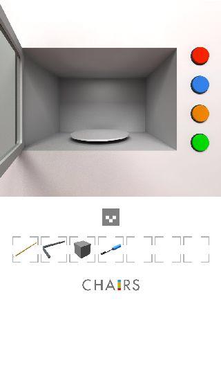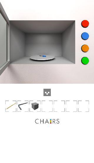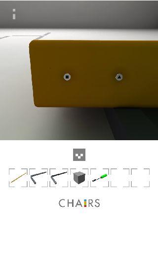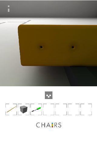 右の椅子の下を調べる。