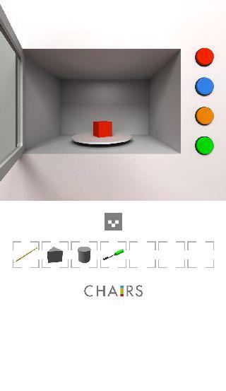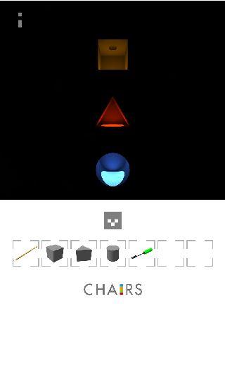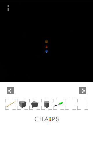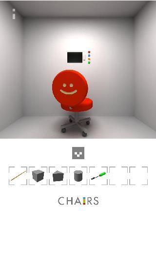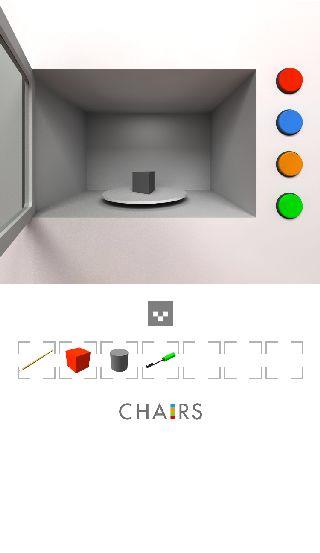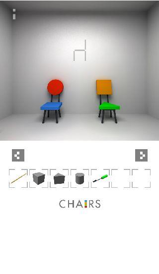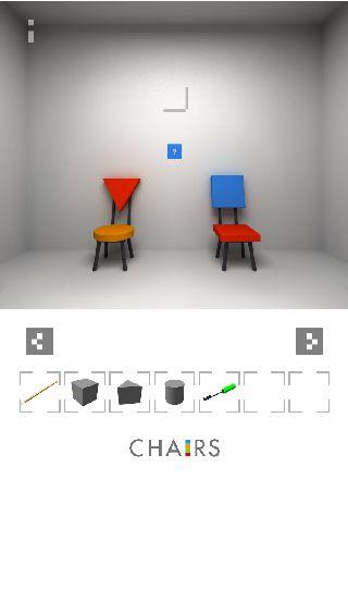 隣の部屋に移動して、『□=黄』と組み合わせになっている椅子から『△=緑』を確認。