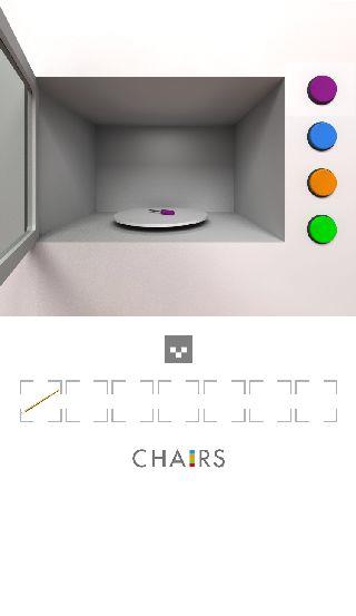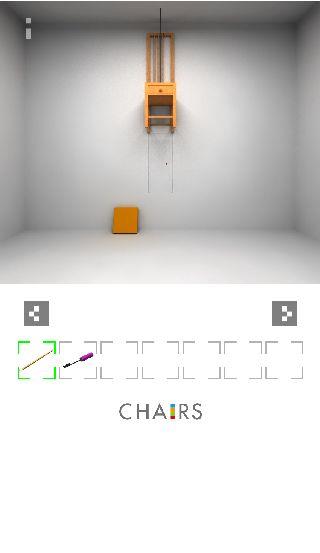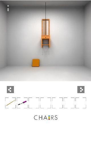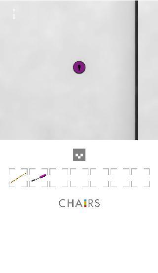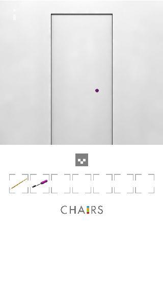 脱出ゲーム「椅子」 無料 3.7 評価する 送信する hozdesign 攻略その9 「緑のカギ」を入れて、紫のボタンを押す。 「紫のカギ」を入手。 最初の部屋の黄色い椅子の前へ。 「木の棒」で一番上まで持ち上げる。 扉の鍵穴を拡大。 「紫のカギ」を使って、脱出。 攻略その1 攻略その2 攻略その3 攻略その4 攻略その5 攻略その6 攻略その7 攻略その8 攻略その9