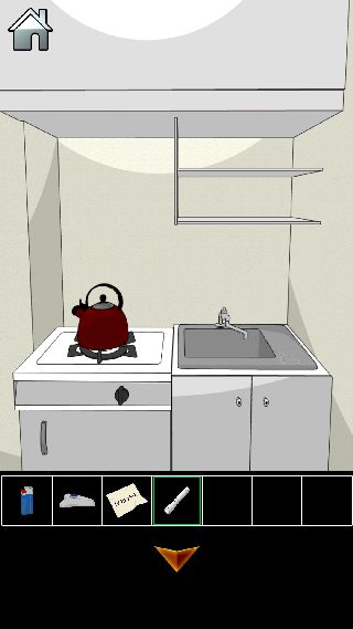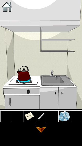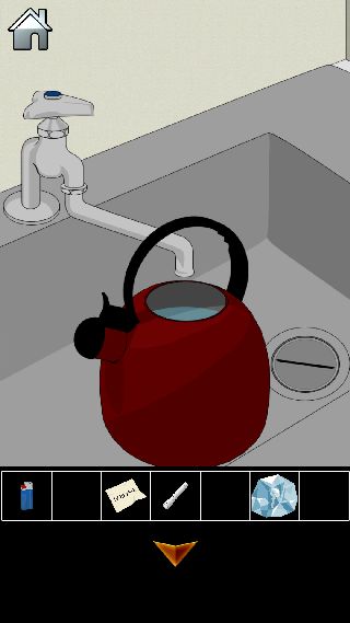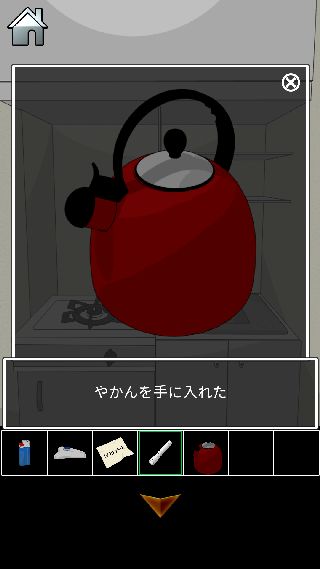 ブラック会社からの脱出 無料 3.0 評価する 送信する 攻略その2 扉を開けて、「LEDライト」を使う。 タンクから「蛇口のハンドル」を入手。 給湯室の前へ。 給湯室に入って、コンロから「やかん」を入手。 左下の扉の中から「氷の塊」を入手。 シンクを拡大。 「蛇口のハンドル」を取り付けて、「やかん」を置く。 水を入れて、「やかん」を回収する。 コンロの上に「やかん」を置く。 「ライター」で火をつけて、「やかん」を回収する。 シンクを拡大して、「氷の塊」を置く。 「やかん」のお湯で溶かして、「鍵」を入手。 攻略その1 攻略その2 攻略その3 攻略その4 攻略その5 攻略その6